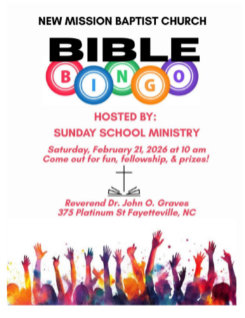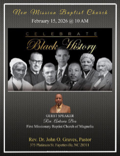 Tomorrow, January 26th at 11 a.m. Jeffery Pack, the great-grandson of WEB Dubois, will be speaking at the Huff Concert Hall at Methodist University. This event is free to the public. On January 31st at 10 a.m., we are holding our Usher meeting, and all ushers are encouraged to attend. We will discuss events in our 2026 calendar. The Usher Ministry is vital to the church’s mission, and your input is essential to serving the Lord with gladness. We hope to see you there! February 6th at 7 p.m., we will have our First Friday Prayer. If you can’t attend in person, please join us on Zoom. February 7th at 10 am, we will have our Conference meeting. All church members are encouraged to attend. These meetings are a chance to encourage one another and discuss important church matters. When we are unified, we are more effective for the kingdom. During the Tiffany Pines Community Meeting, a representative from the Fire Department announced that residents can schedule an appointment to have their smoke detectors checked by calling Mary Murphy at (910) 433-1116. The representative also talked about cold-weather white flag facilities and carbon monoxide (CO) monitoring. Additionally, there would be a video that explains how to navigate the two roundabouts on Rosehill Road properly. For more details, please see Bro. Robertson. Lets continue to keep each other in prayer.